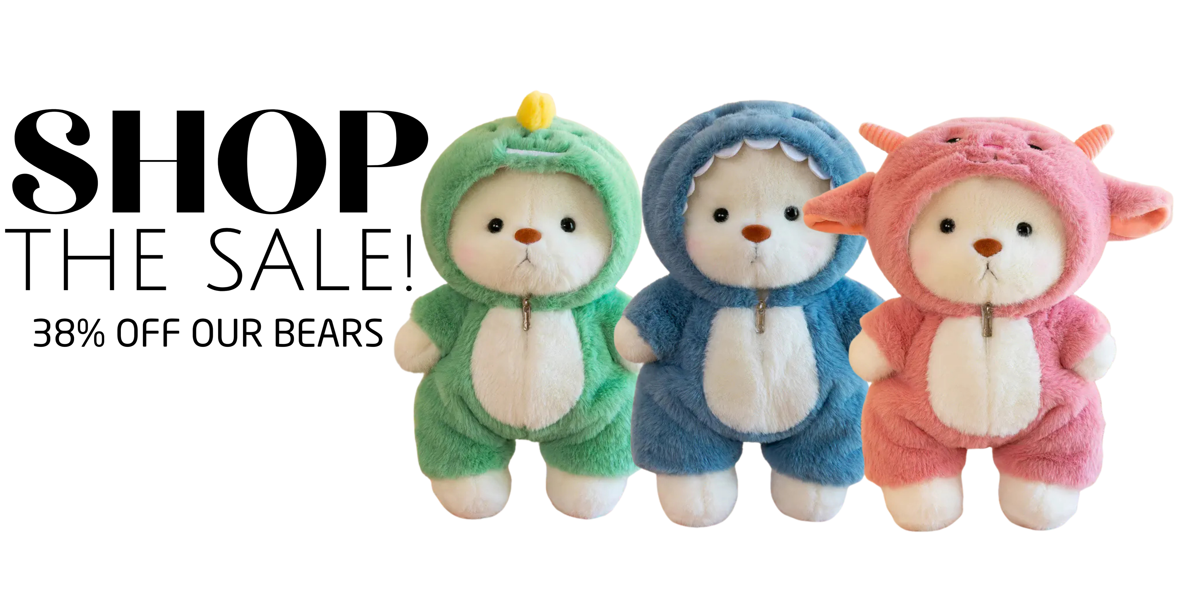 Our Teddy Bears come with removable animal themed onesies, offering a touch of interactive customisation